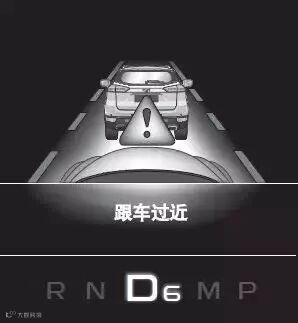 这是车辆高速行驶中,且与前车相距过近时触发的一项预警。虽然在当前行驶状况下不会发生碰撞,但假如前车突然发生强烈制动,在此跟车距离下,碰撞将无法避免。