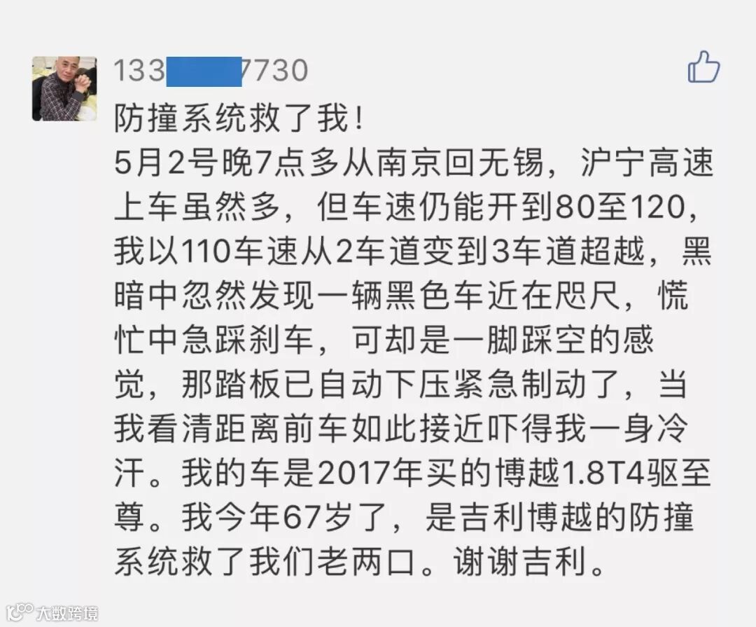 五月4号晚十二点零五分左右,我们在微信公众平台收到尾号为7730的博越车主留言,小吉看完那是胆战心惊却又倍感安慰,车主分享到: