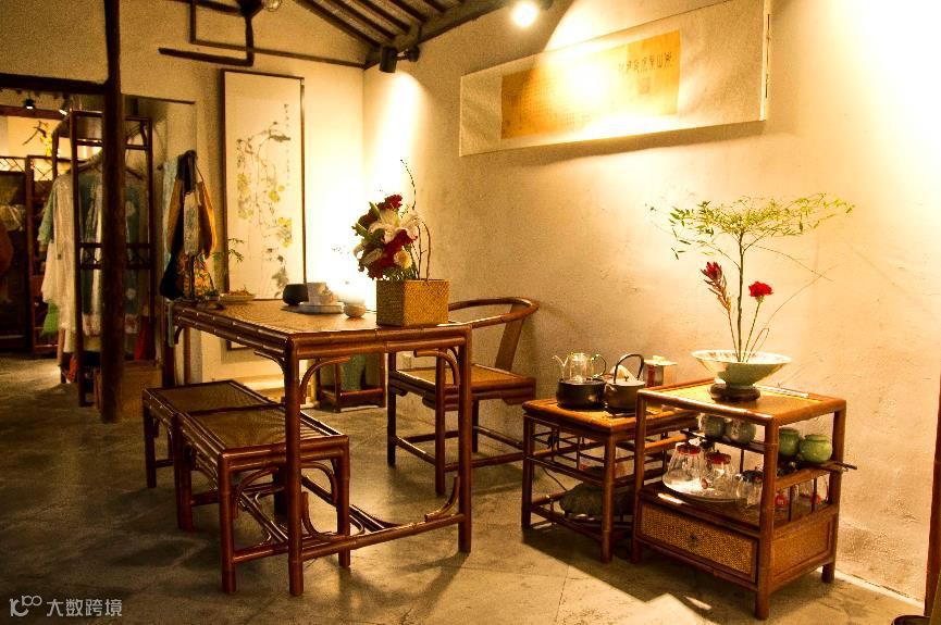 下车后过桥来到对岸,沿着这条羊肠小道就来到了目的地。这家名叫茶于的古镇茶店据说创始于1946年,算是练塘古镇的半个老字号了。这里不仅有我们中国的各种茶叶,也有像印度红茶这种外来茶。