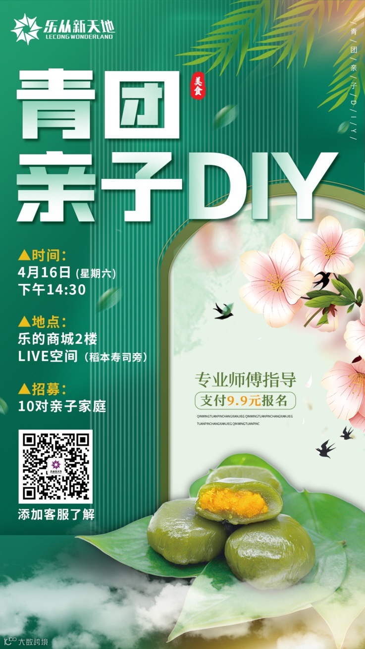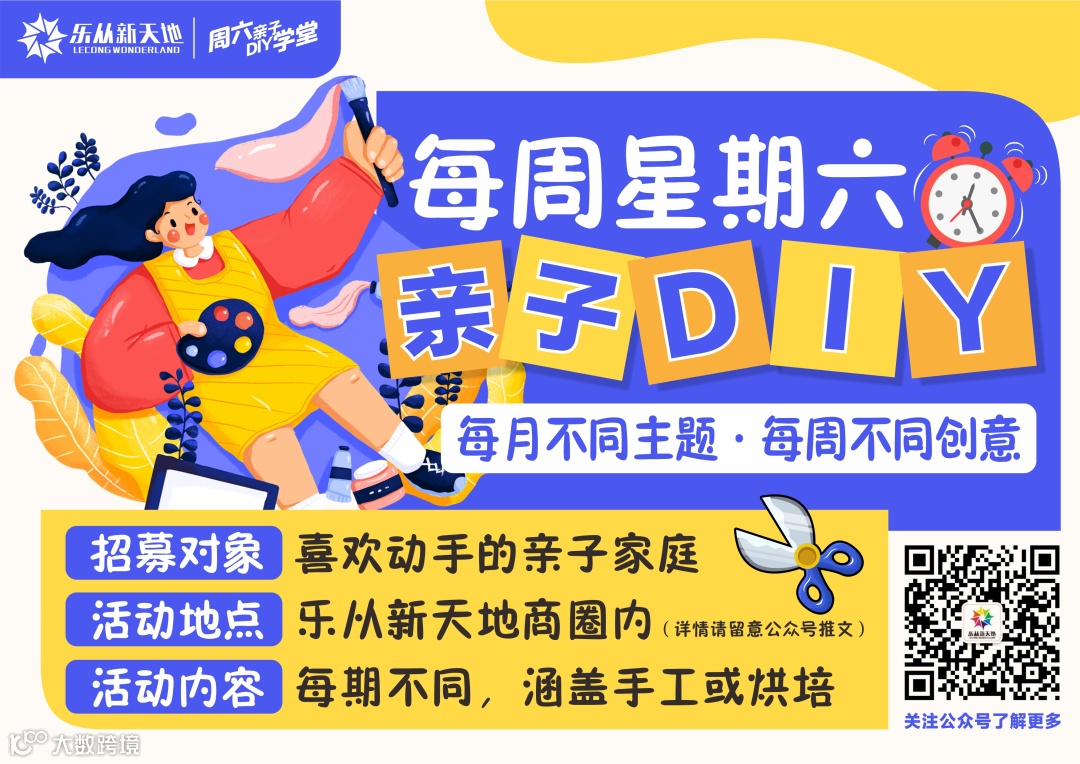 扫描上方新天地君客服微信或关注乐从新天地官方公众号可及时了解DIY活动相关资讯。