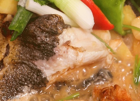 鱼肉用铁锅炖煮,吸收了浓郁的汤汁