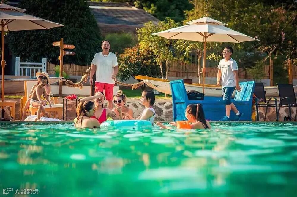 若你喜欢闹腾,没事这里闹起来的时候也是个好去处。那扑面而来的户外泳池,孩子们在浮床上嬉戏打闹,还有姑娘在池边涂着防晒霜,池边岸上属于烤串的香味越过木船一阵阵飘送过来......