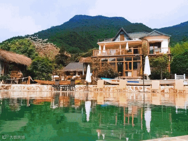 大片的苍绿翠竹环绕,叩开茅舍屋檐下的柴门而入,一片生机盎然。环视院子,大概是门前茶山果园的缘故,空气里透着股清新的茶香味道。还有那清澈的泳池,倒映着一草一木,脑海似乎浮现出一家人在池边嬉戏打闹的热闹样子。