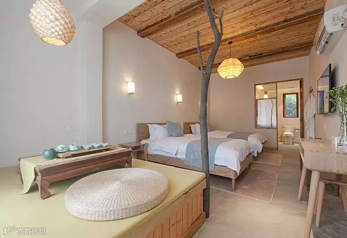 每个房间独立而又交融,既给了客人足够的私密空间,却又极具诗意和禅境。当室外的风景和室内的空间无缝对接,可隐、可禅、可修,亦可道,所以说这是个神仙妙地毫不为过。