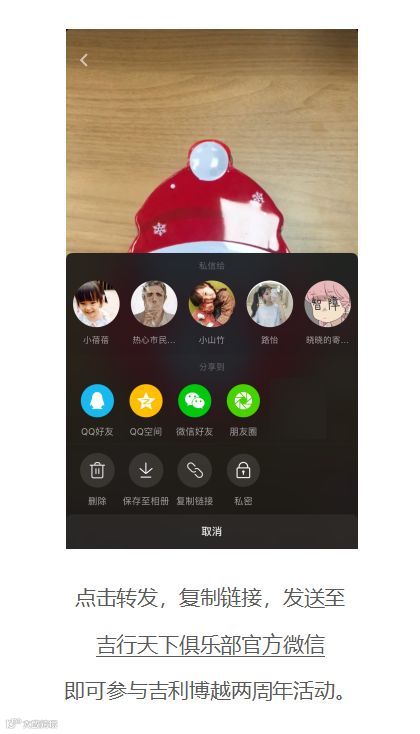 4、 发布完毕后,将视频链接发送至吉行天下俱乐部官方微信;