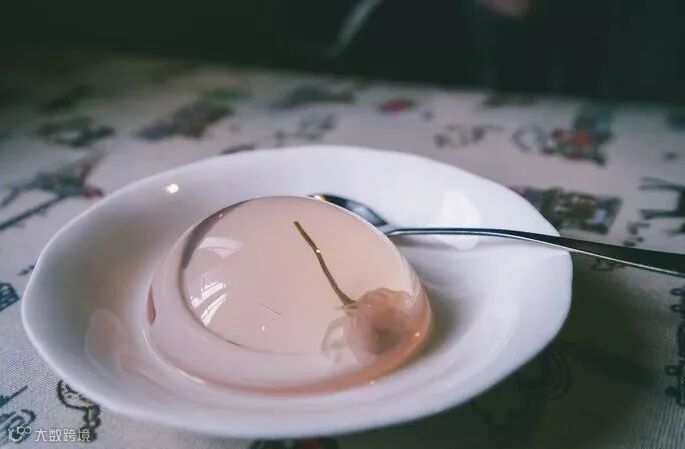 樱花冻本尊,晶莹剔透,十分可爱。盘子和勺子应该也是为了配合樱花冻而挑选的,味道不错,甜度适中,清爽怡人,齿夹留香。