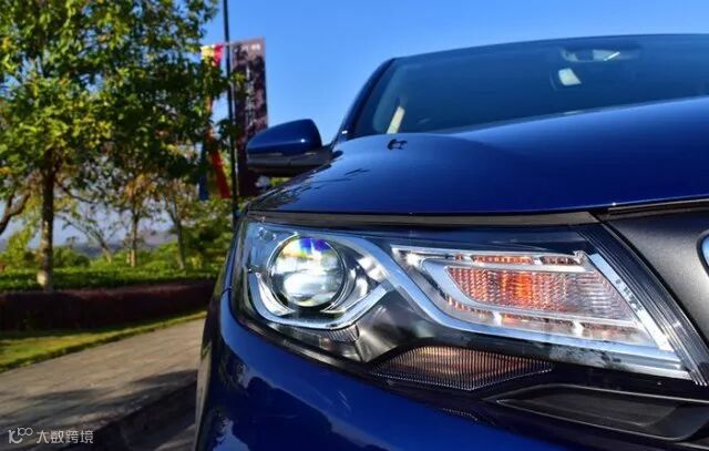 再来看看车,水滴回纹进气格栅,立体漂亮!阳光照射下来,点点星光十分好看。LED鹰眼设计的前大灯,高端前卫。