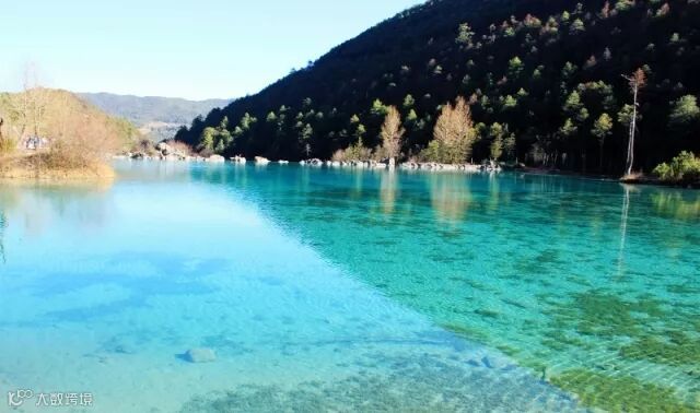 那是一种怎样洁净的蓝,它似海洋,却比海洋清澈的多;它似天空,却比天空纯正的多。最奇特的是,这里的水懂得“变色”越到中央颜色就越深,几乎变成深湖蓝色了。