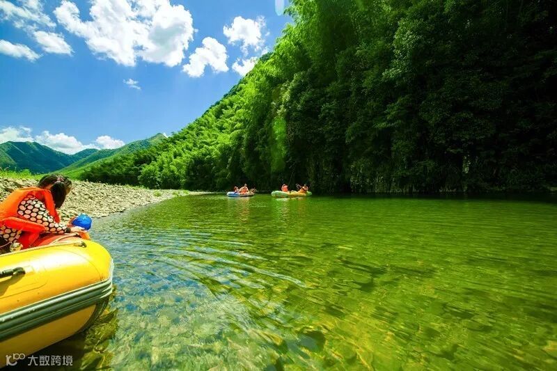 上午9点,我们一行到达月亮湾景区。把行李放好在我们提前预定的宾馆后,准备好相机无人机迫不及待冲向漂流的起点,大家似乎都有些默契,自由搭配,一个家庭一组,各自拿起一支浆,莫名有些兴奋,想着那种“一条船激起千层浪”的刺激之感,想着那种饱览溪涧山色之美景,不由令人心旷神怡。