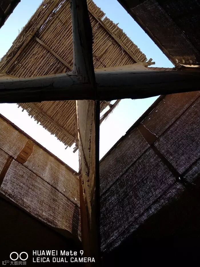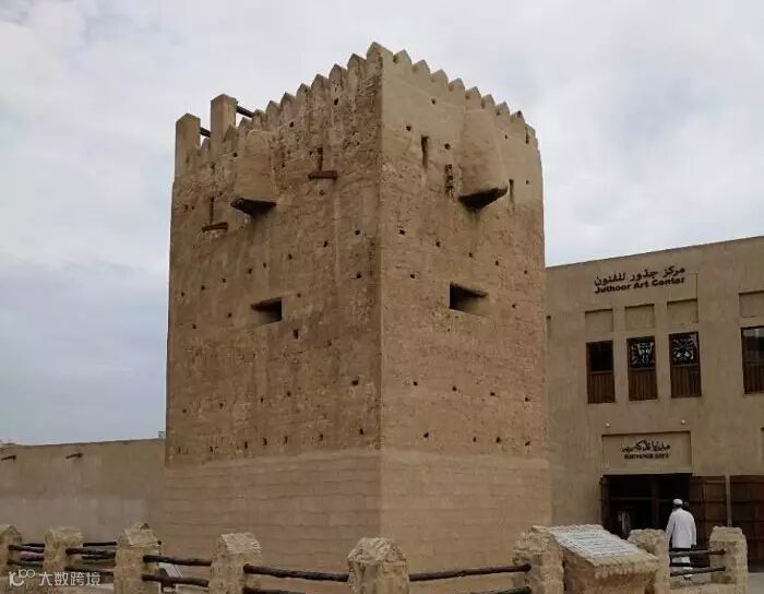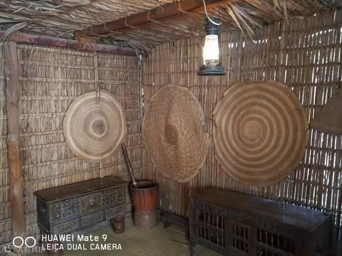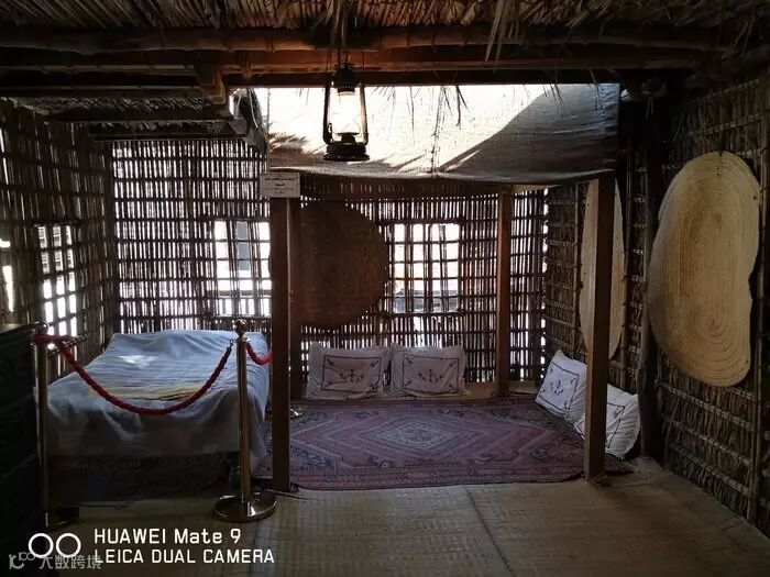 椰枣树建成的老房子。过去没有空调,降温全靠左边的这个通风塔。