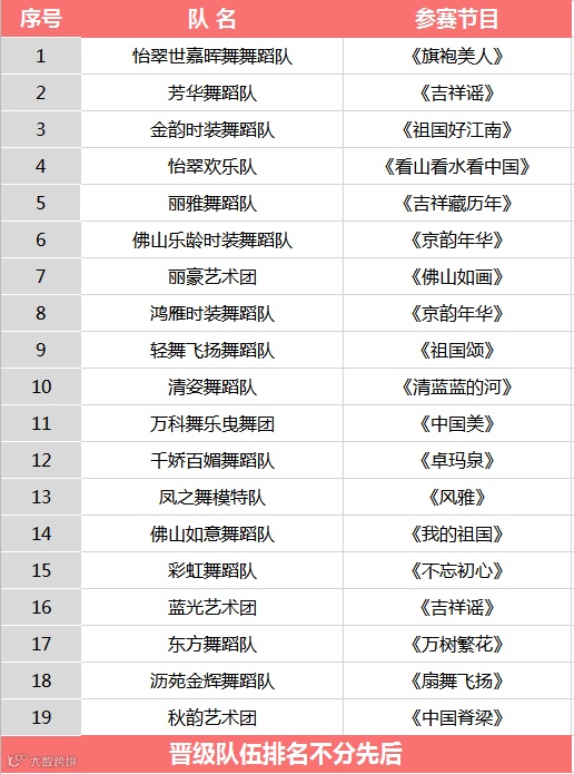 经过上下午角逐,共19支晋级队伍诞生