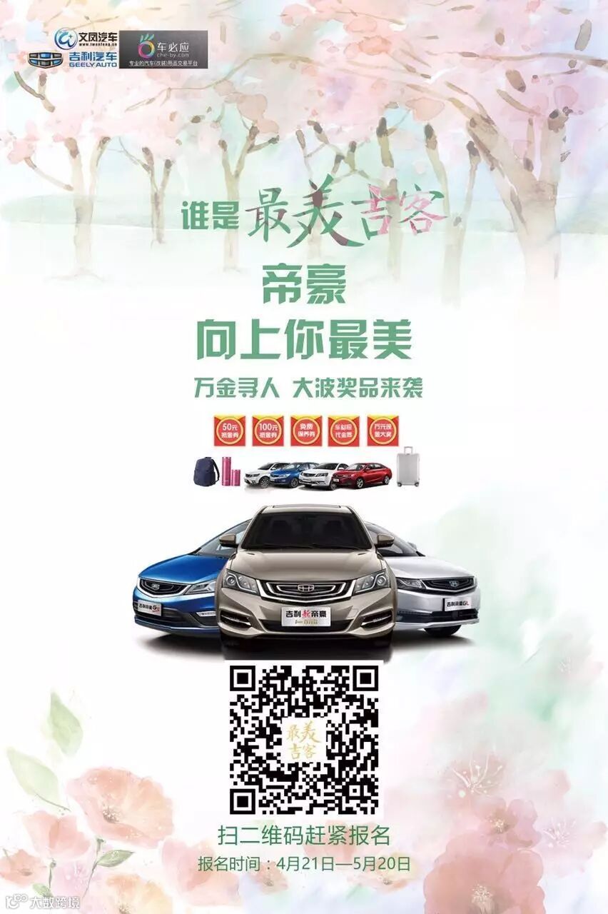 由吉行天下俱乐部与文凤汽车合办的“最美吉客”评选活动,火热进行中。距离报名截止,仅剩最后两天!