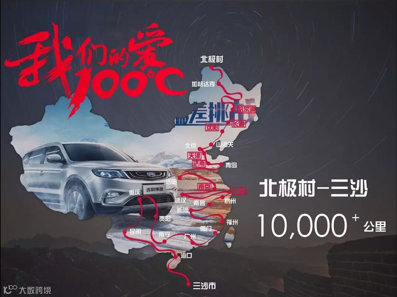 博越100℃温差挑战,即刻启程。这是一次北至漠河北极村南至三沙、跨越10000+公里的挑战之旅,也是穿越数十座城市、吸引无数车主参与的体验之旅。吉行天下俱乐部,将在沿线举行一系列吉·家宴活动。