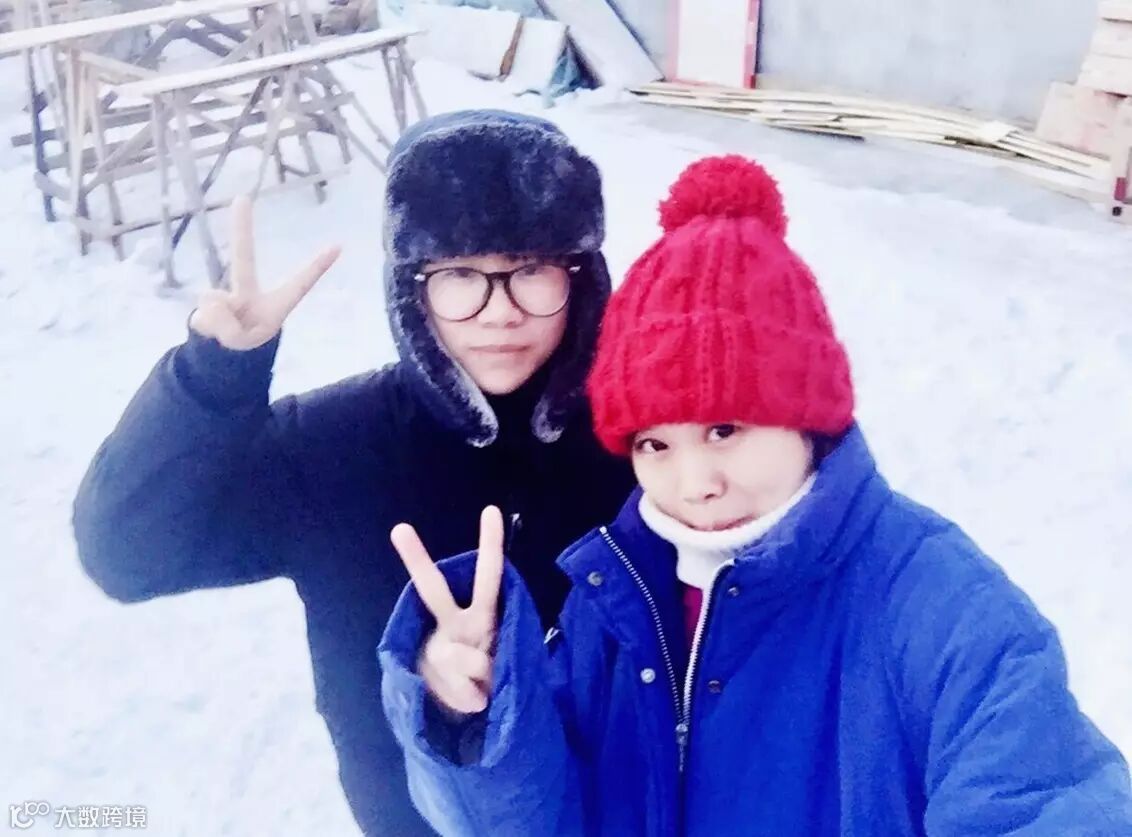同行的33,则戴上了年代感十足的火车头帽子。隔着镜头,都能感觉到那两根“耶”出来的手指在寒风中瑟瑟发抖。