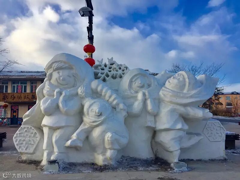 道路旁边的冰雕雪人,个个笑逐颜开。然鹅,这向上弯曲的嘴角,怎么也敌不过透骨的寒意。