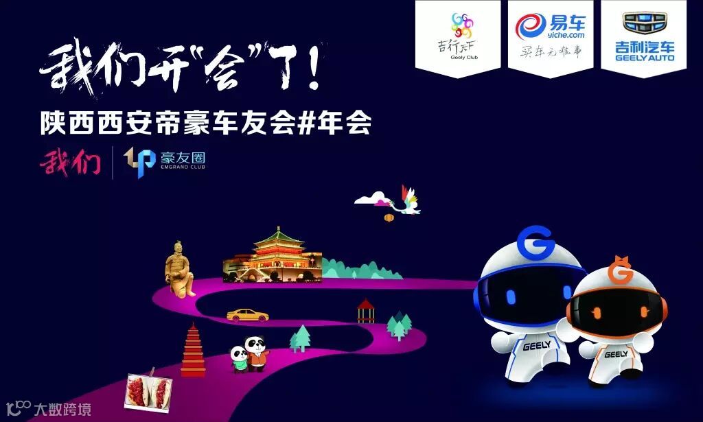 接下来就然我为您揭晓这华丽的篇章。本届年会共计报名车主75人,家属46人,共计121人参加。是历年来活动参与人数最多的一次。首先大家看到的是本届年会的主题背景,借鉴了2016全国豪友大聚会的主背景。元素融入了陕西的各种地标美食以及熊猫朱鹮。欢迎全国豪友来西安做客。