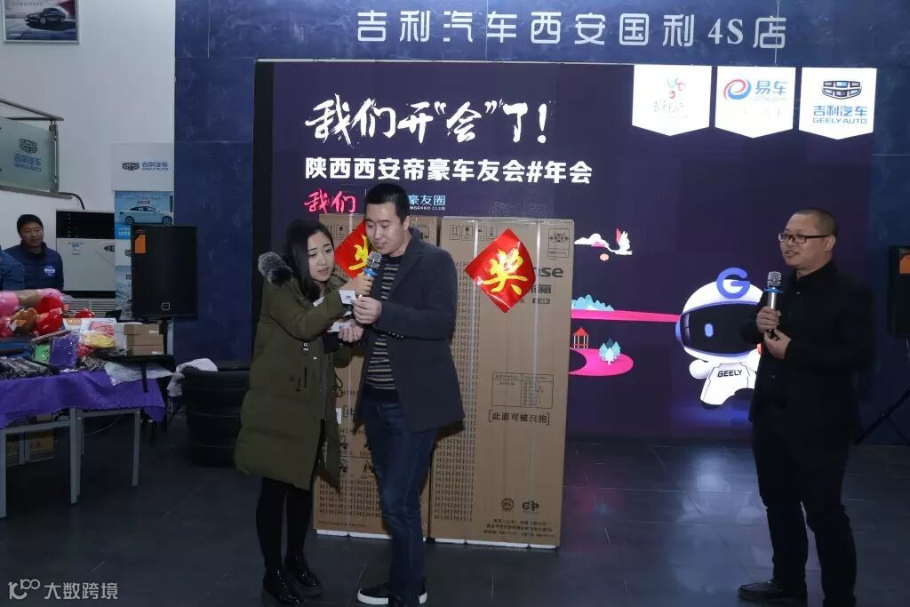 今年年会奖品不是一般的给力,50寸大彩电,双开门大冰箱,电压力锅,饮水机,车模等等大小奖品,保证参与的每位车友都能拿到奖品(我的目标是电视机哈哈),要完全切合本届年会的主题“开心帝豪,只为向上”,我觉得如果没有想拿大奖的想法的人都是没有向上的精神。哈哈哈哈哈