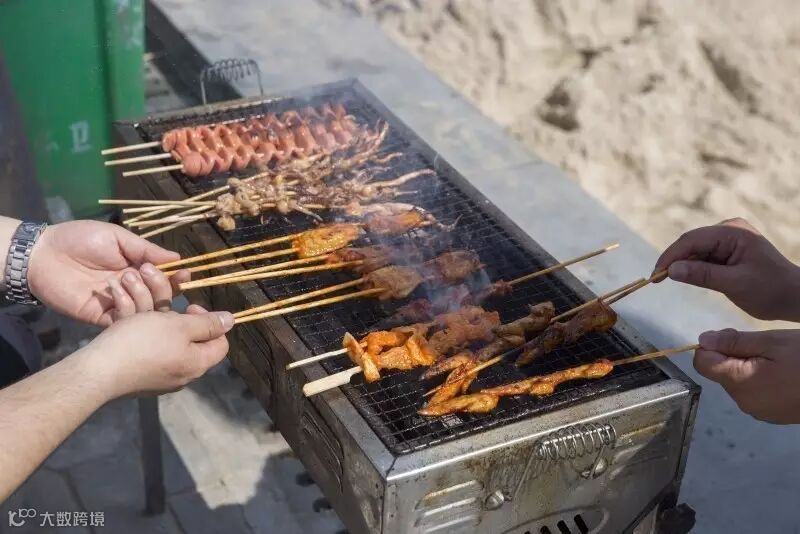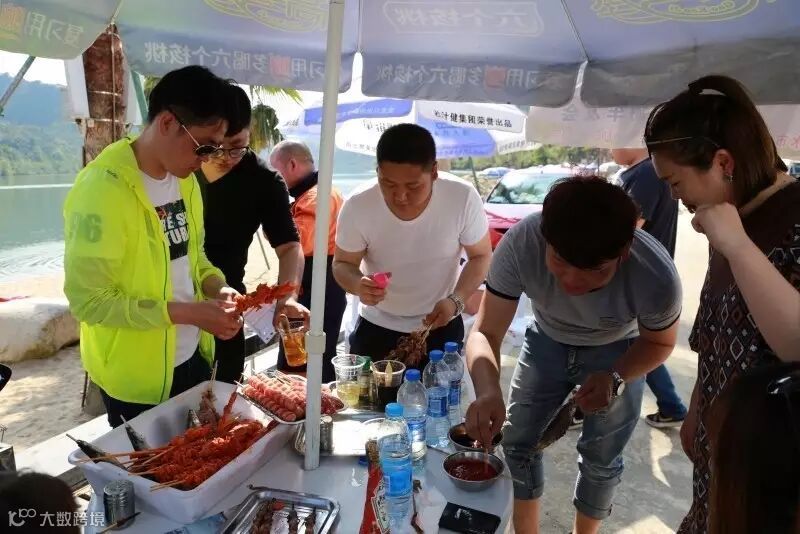 被太阳烤的不想动弹的人儿,见到美食忘了热,反而热情高涨。