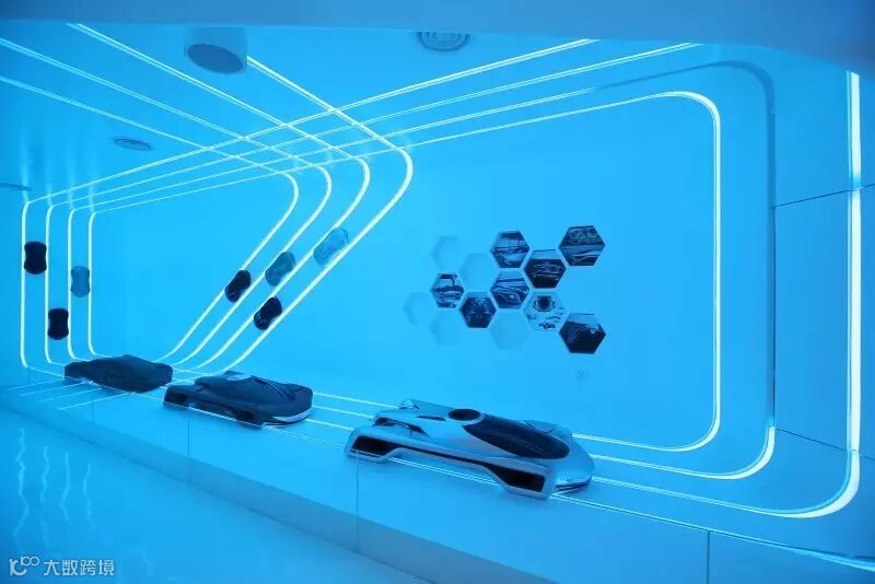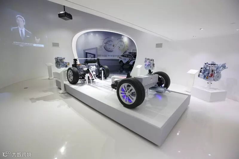 体验馆内,充满着科技未来化的气息,记录着吉利汽车的路程,以及吉利汽车未来的美好愿景
