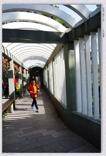 旁边的凉亭,一个小朋友不经意抢了镜头