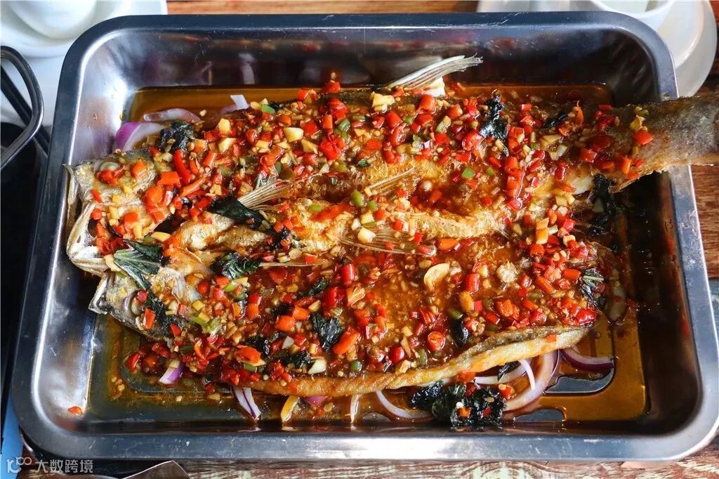 采用独特的香料腌制完成后,旺火炸得皮脆肉嫩,自然骨肉分离,鱼肉嫩滑可口,这道菜可谓是将鱼鲜发挥的淋漓尽致!