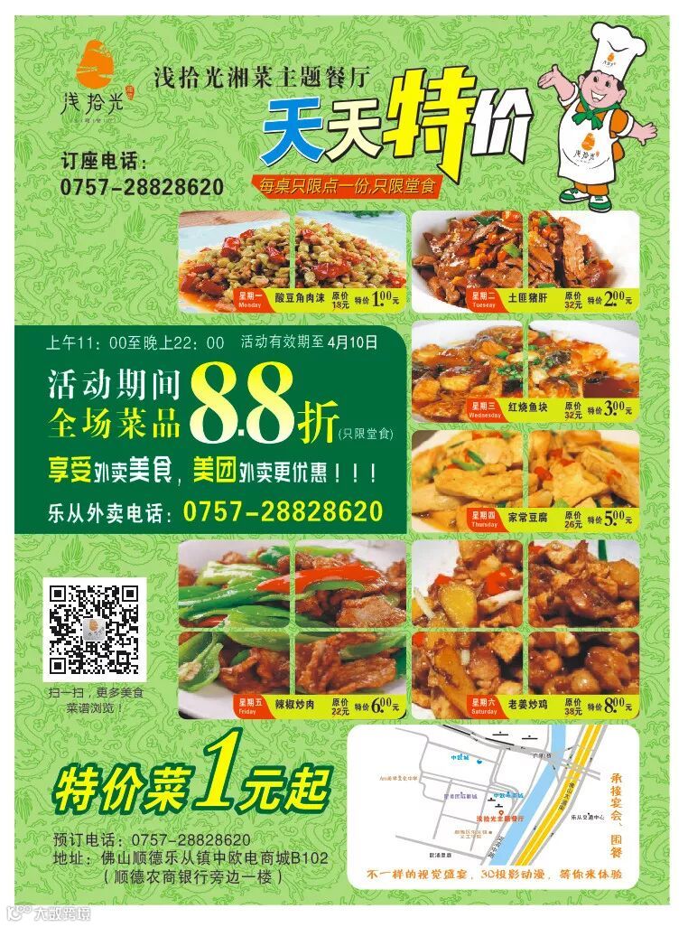周一到周六,浅拾光每天提供拿出一个特价菜