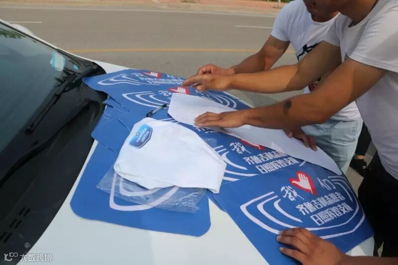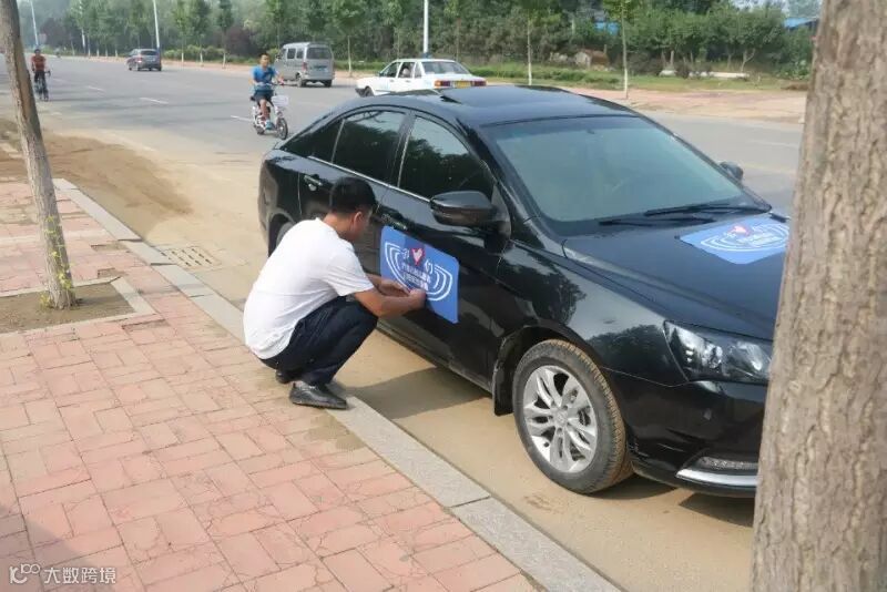 车友们陆续到达,并张贴本次公益活动车贴
