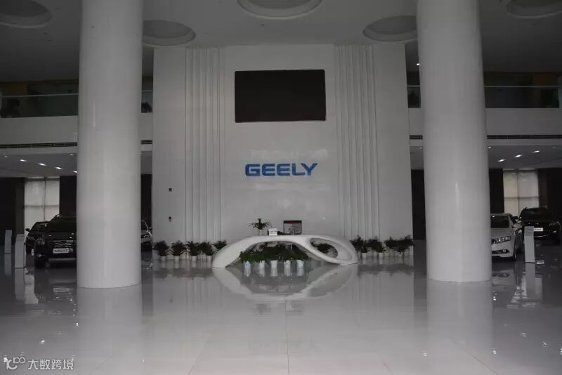 吉利总部大楼大厅里陈列的各款车型,每个车型代表着吉利的一个时代