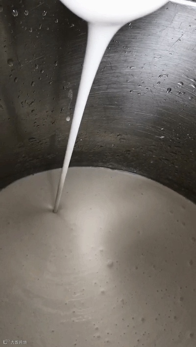 待米浆的温度未完全冷却尚有余温的时候,就加入糕种自然发酵。荔园一直摒弃任何添加剂,采用传统的发酵方法,做到纯天然。经历大约八个小时的发酵时间,才能够使用。