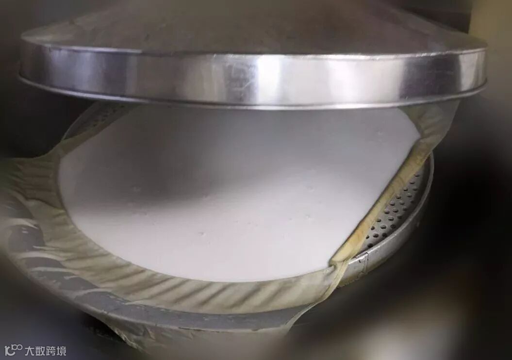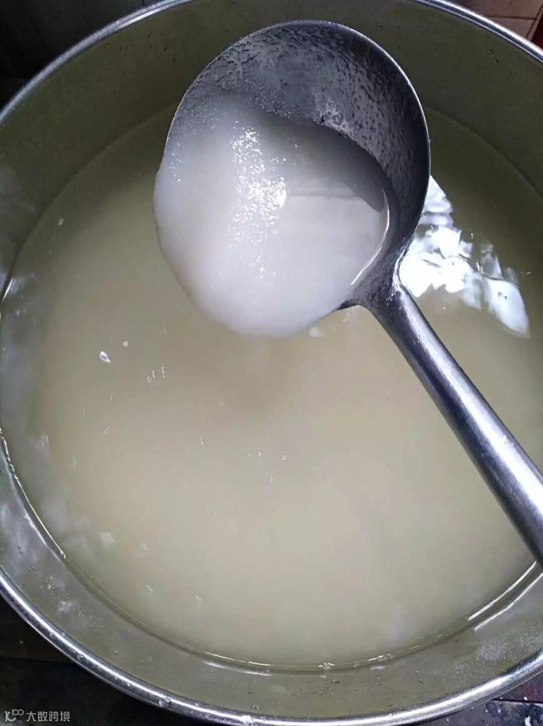 磨出来的米浆要装进去布袋里面,再用重的东西压着,将多余的水分压出。剩下在布袋里面的米浆才能够加糖水。