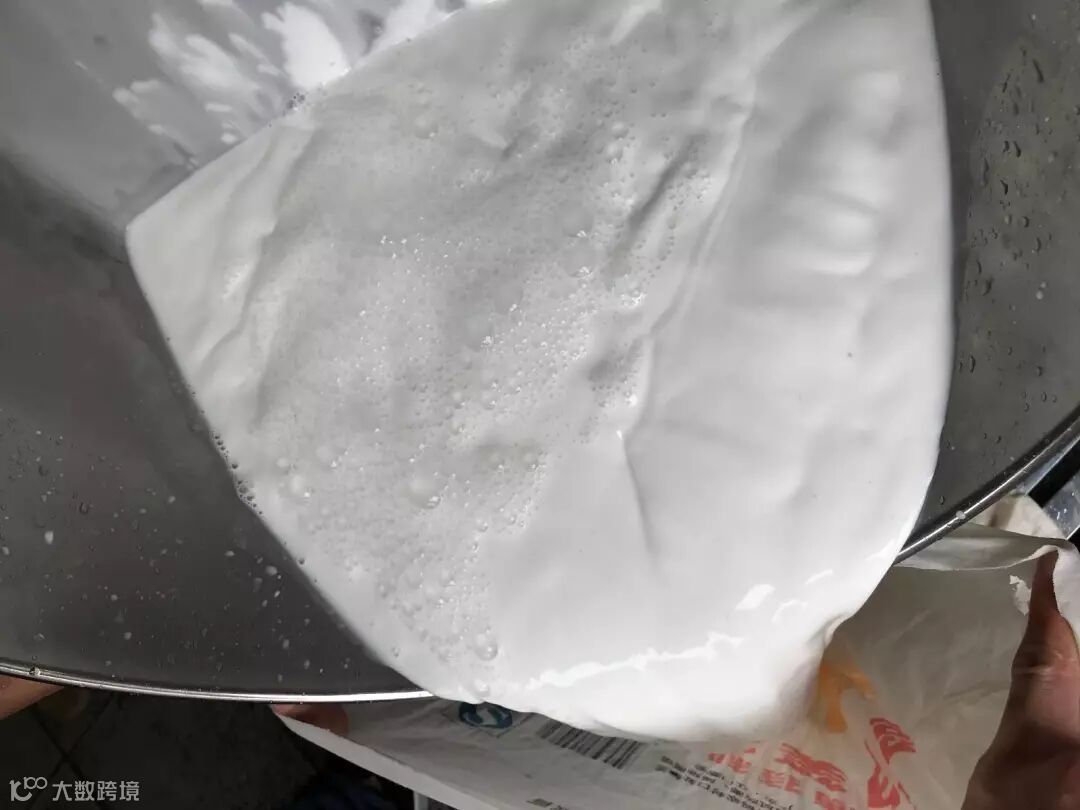 za完米浆,就要加上糖水了。与其他减少成本方便为主加入糖精的对比,荔园用的是精品的白砂糖。因此,荔园的白砂糖不会有酸味,是纯正清甜的味道。纯手工融成糖水,再撞进米浆中。