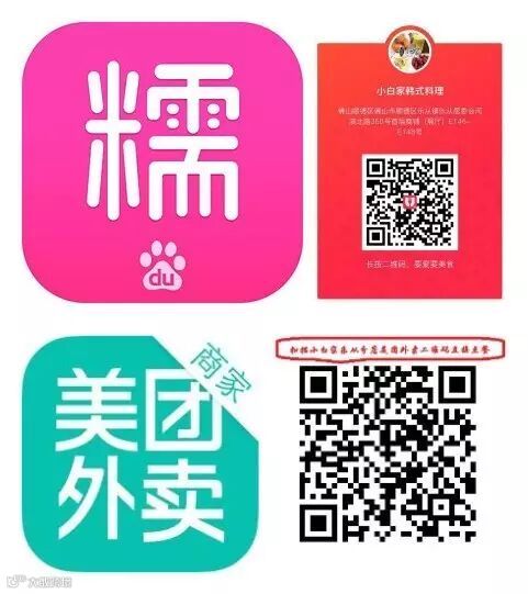 扫百度和美团外卖小白家的二维码即可点餐:
