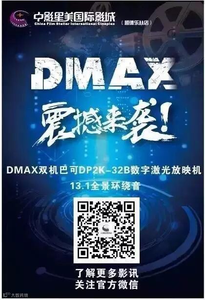 中影星美国际影城乐从店,全新DMAX影厅震撼来袭!24米巨幕,13.1全景环绕音,营造360度无死角动态流动声场;更高清的画质,更悦耳的声音!给您一场无与伦比的视听盛宴!