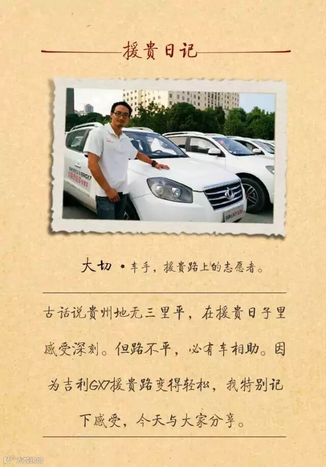 吉利官方车主俱乐部Hi我们贵州到,汽车跳,百人援贵3800公里路,面对复杂地况,若不身怀“真功夫”,路漫漫兮,是英雄也会累倒。但车手大切说了,还好有吉利GX7一路相伴,腰不疼,路也稳了。