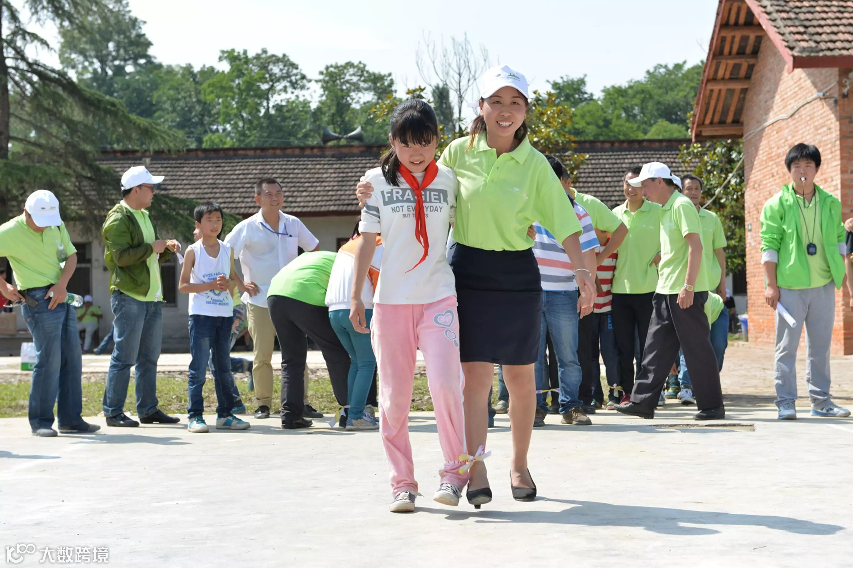 与孩子玩二人三足、拔河游戏