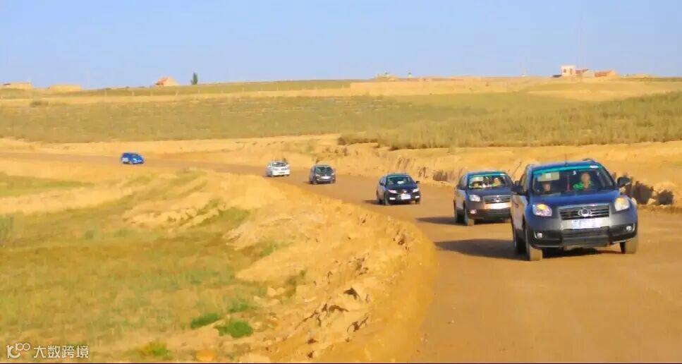 浩浩荡荡的车队走过柏油路,泥泞路