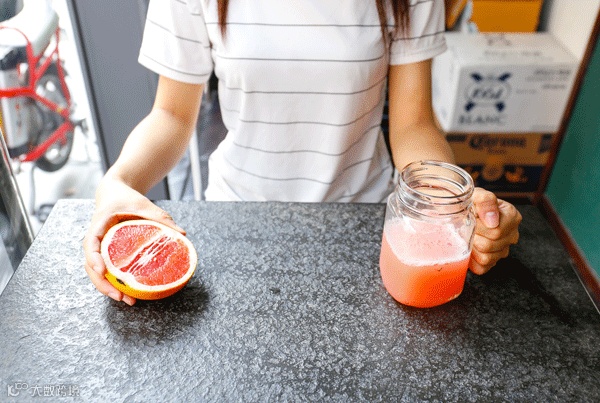 ▲ 鲜红柚与特调果汁混合,变!