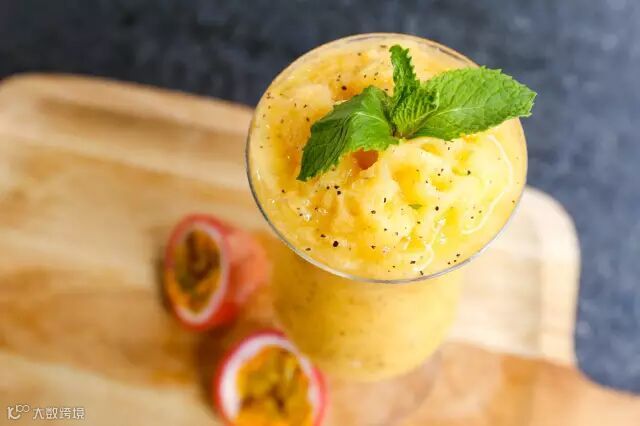 ▲ 一杯不含色素的健康美味冰沙!选用新鲜百香果鲜制