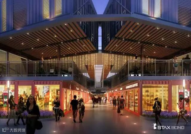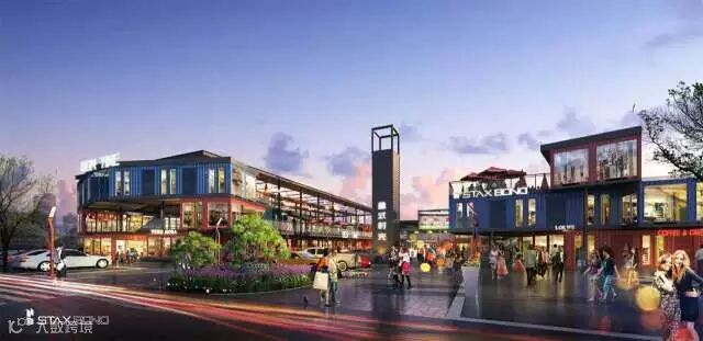 在乐从供销集团规划的版图里,“BOX TIME集装箱街区”位于20万平方米的中欧电商城内,BOX TIME占地面积约4300平米,是由两百多个集装箱组合而成两层半的建筑群。
