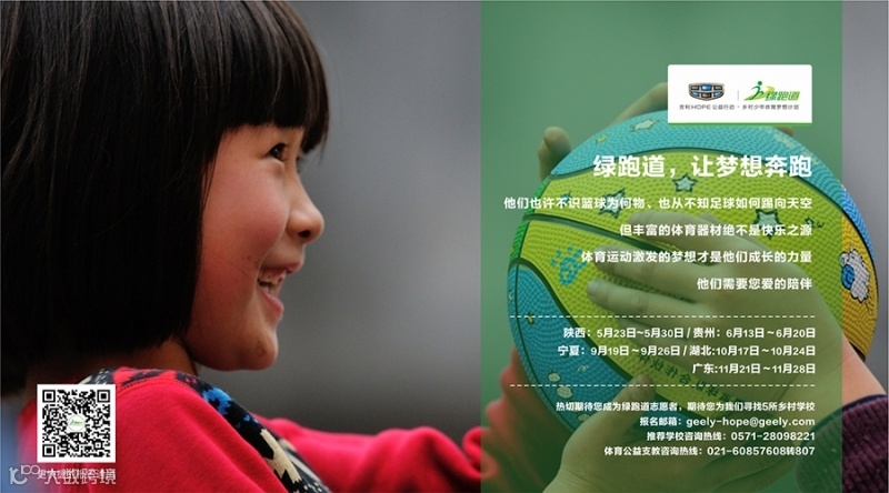 如果去年您与吉利HOPE·绿跑道公益行动擦肩而过,那么现在机会来了!近日,吉利HOPE·公益行动2015季全面启动,全年将走进陕西、贵州、宁夏、湖北、广东五省乡村小学,日前项目组正向全社会招募支教志愿者及前期选点志愿者。