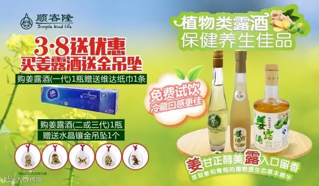 1、在顺客隆各门店购买姜露酒(一代)1瓶赠送维达纸巾1条。