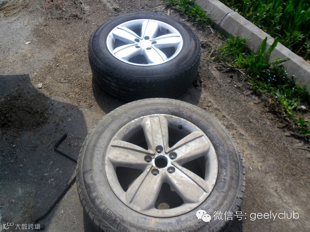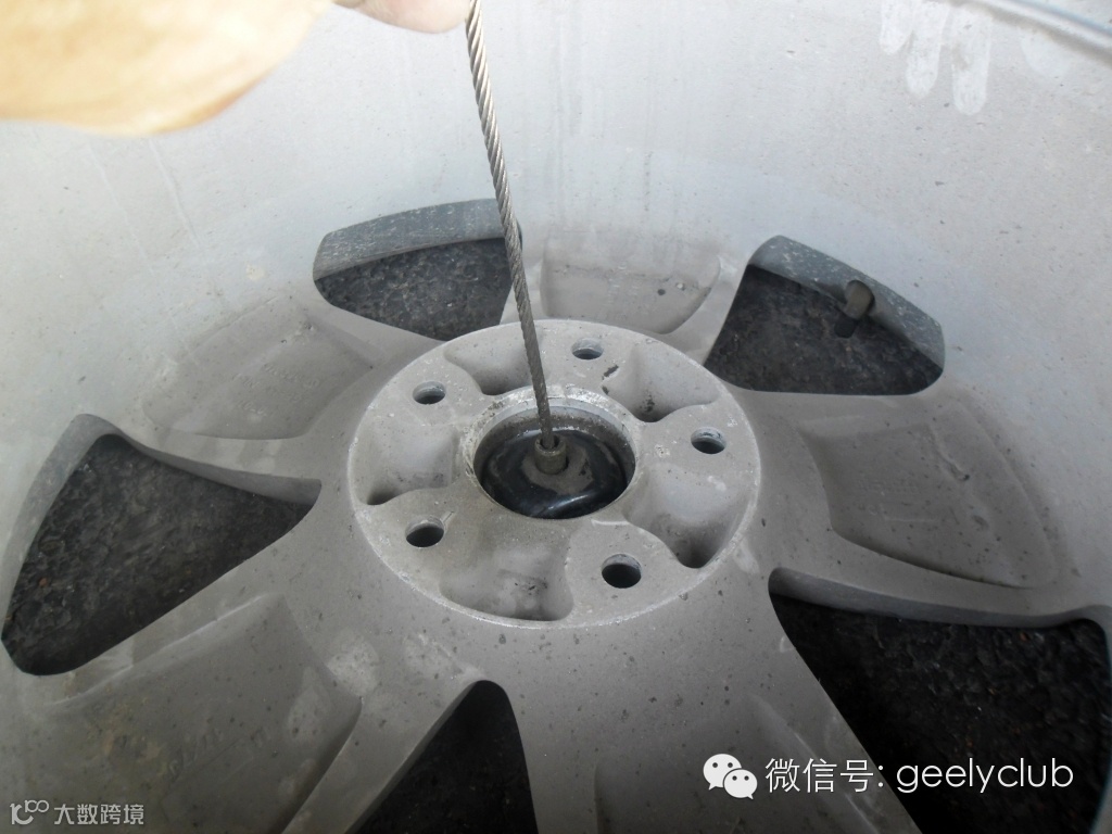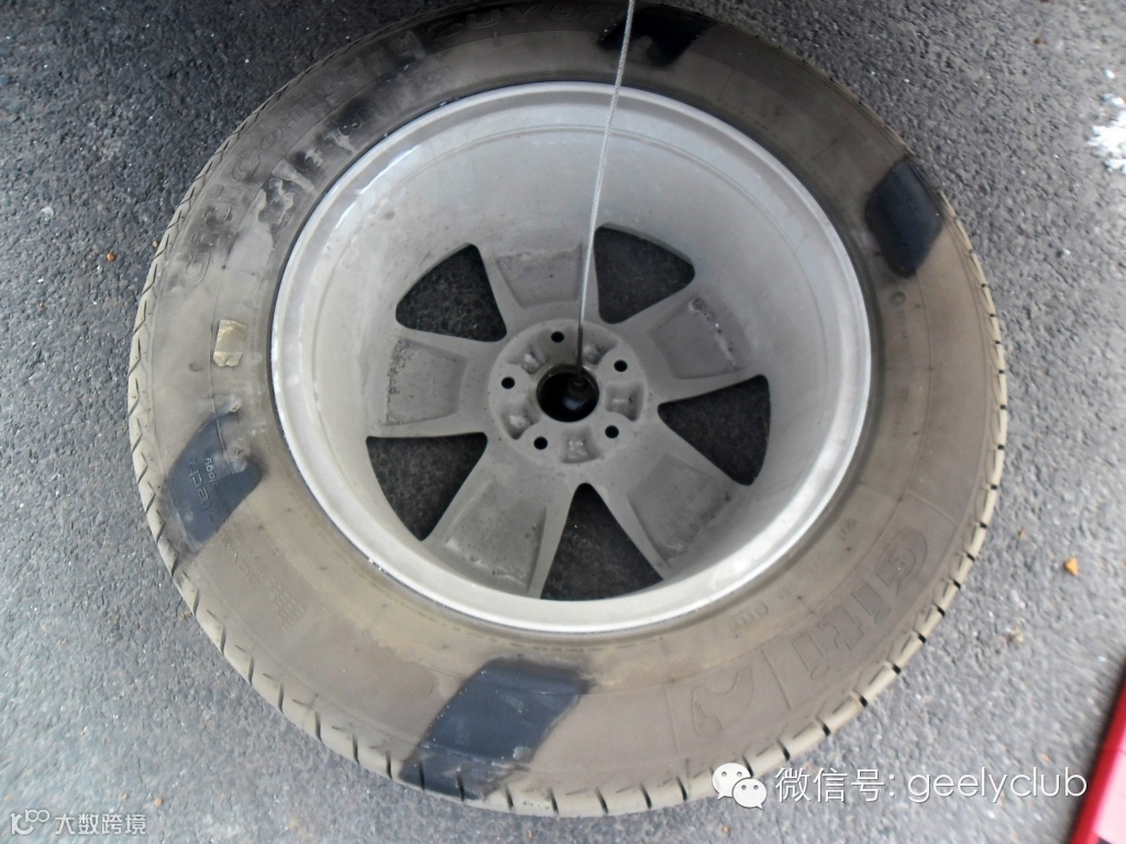 现在开始装备胎,5个螺丝孔是对称的,只要把备胎对准螺丝套上去就可以了,用手把螺丝一个个旋进去。
