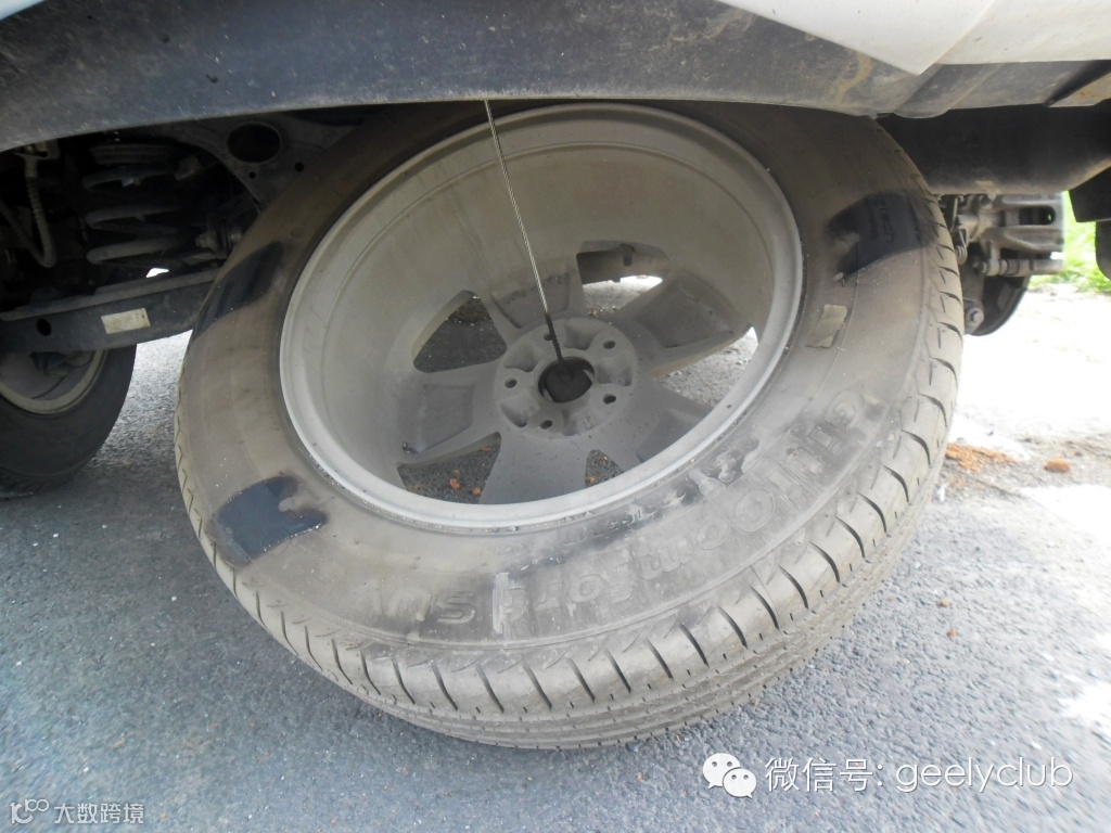 3.在有坡度的路上更换必须找些石块把其余轮子垫好。