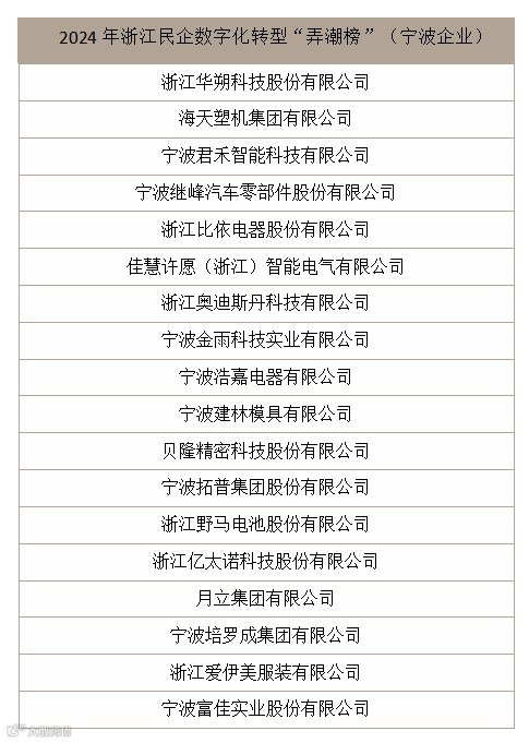 导读:浙江民企数字化转型“弄潮榜”发布,18家甬企上榜