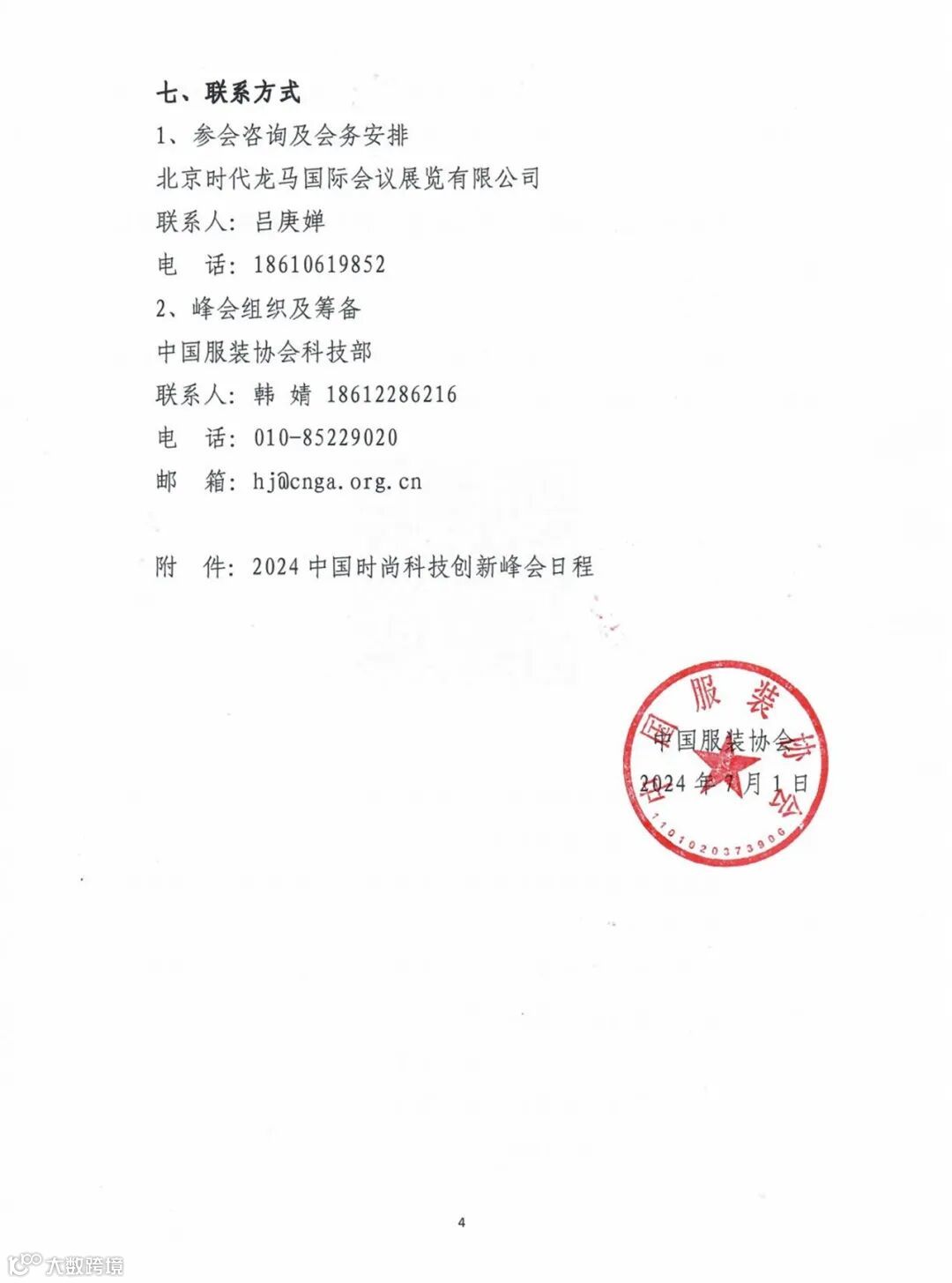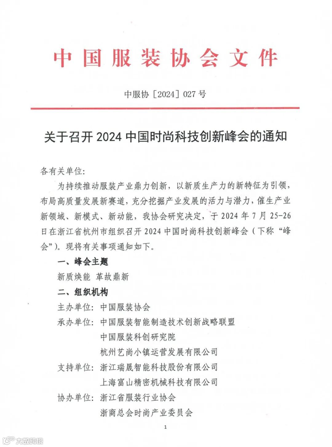 关于召开2024中国时尚科技创新峰会的通知 中服科创研究院