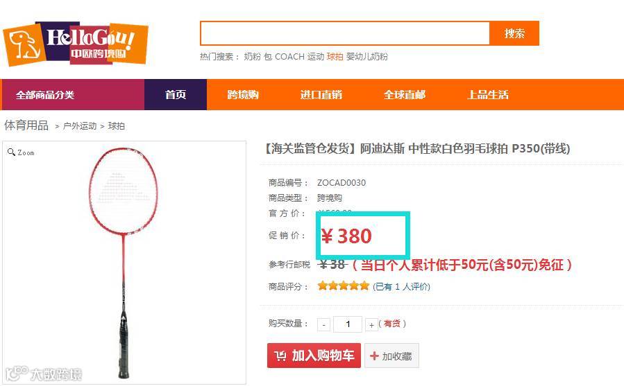 阿迪达斯 中性款黑色羽毛球拍 P350(不带线)