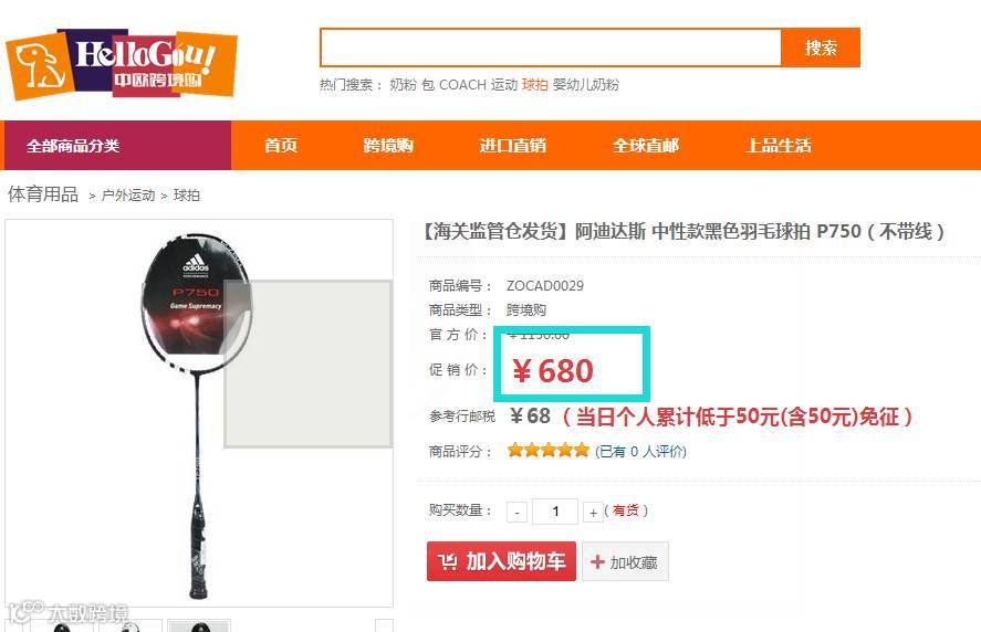 阿迪达斯 中性款黑色羽毛球拍 P750(不带线)