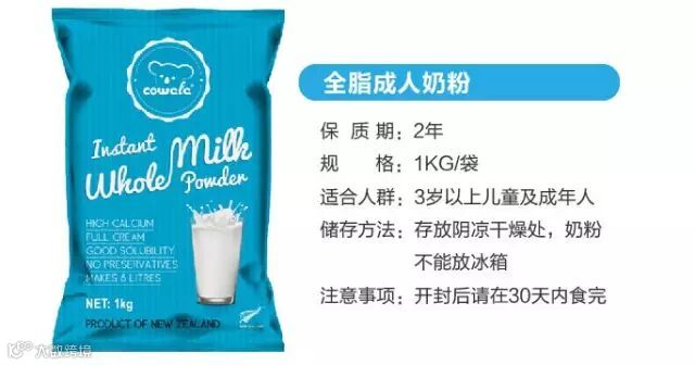这款全脂奶粉适合3岁以上的儿童以及成人,富含铁、钙、维他命C、维生素D以及维生素C,帮助人体提高免疫力远离疾病,提高人体机能。每25克奶粉就可以冲调250ml的香浓牛奶。规格是1kg。