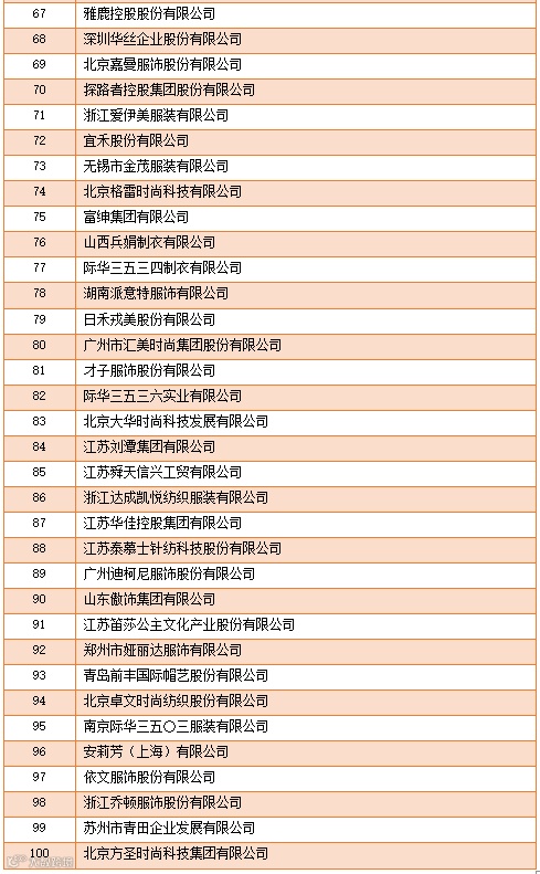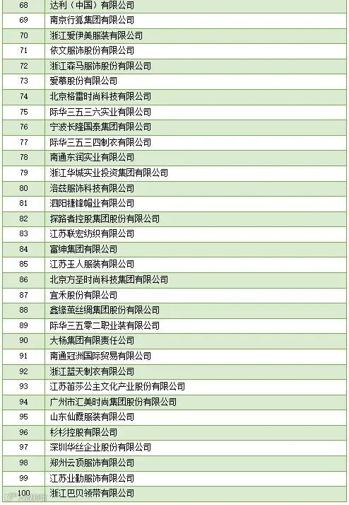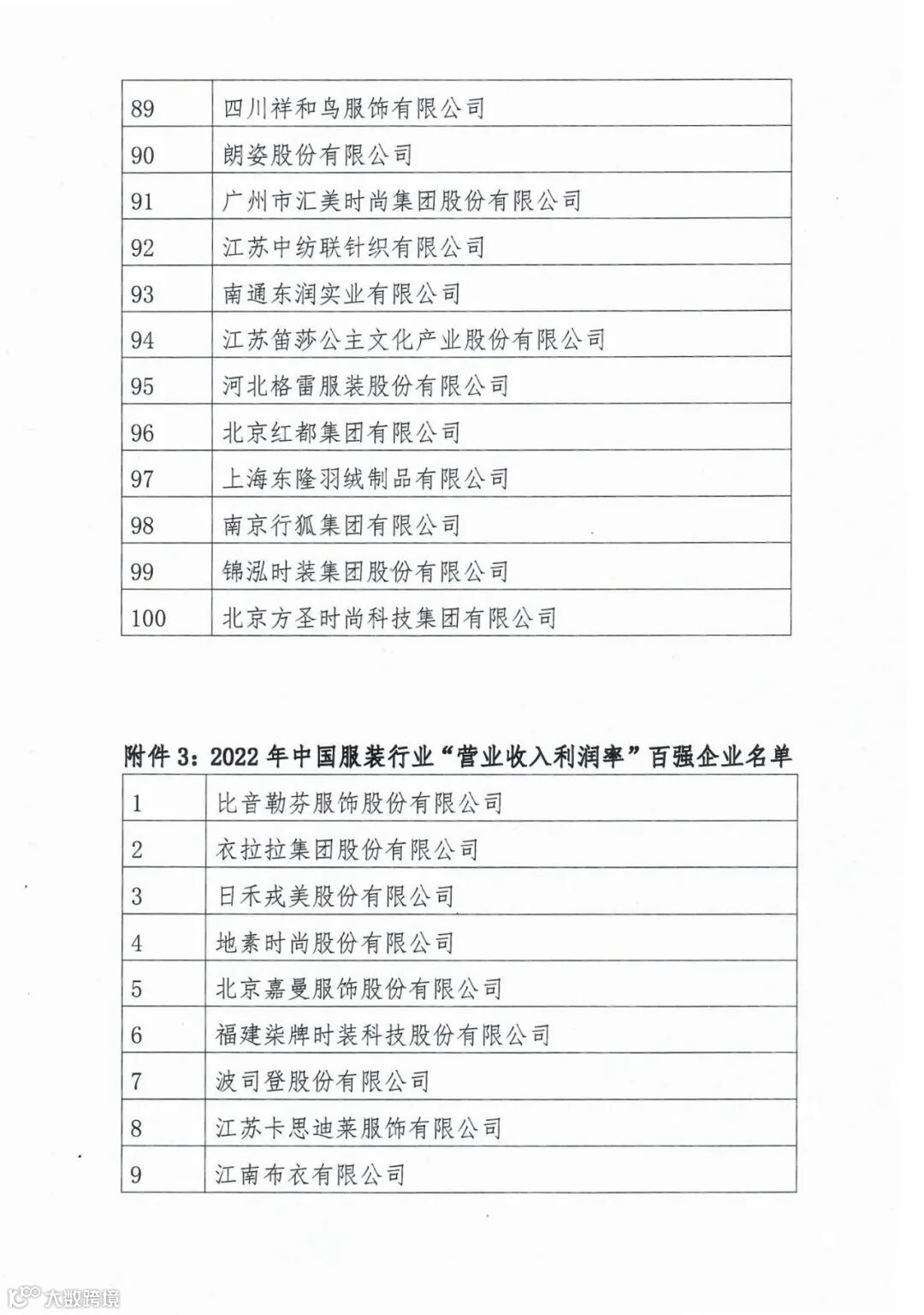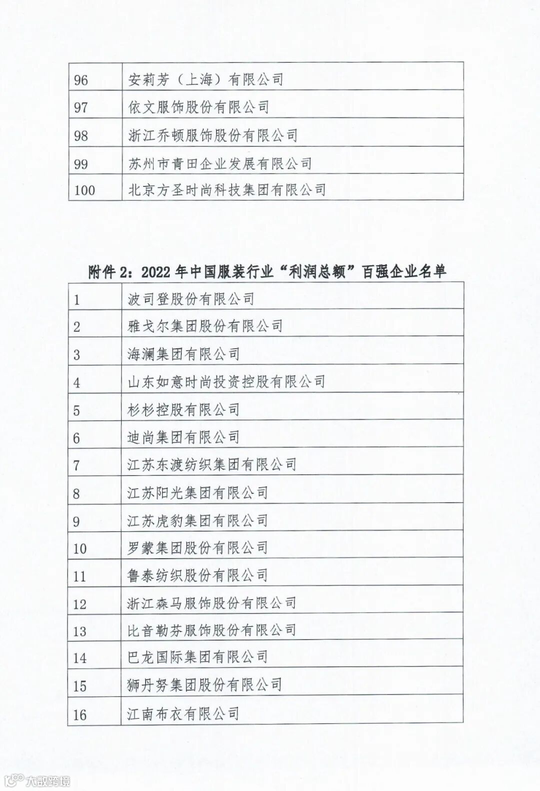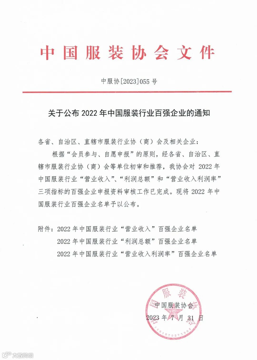 2023年7月31日,中国服装协会正式发布“2022年服装行业百强企业”名单。