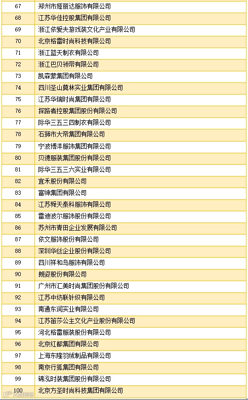 需特别说明,“中国服装行业百强企业”名单由中国服装协会基于客观公正的原则,在会员企业中依据第三方审计报告财务数据进行独家发布,此项工作一直遵循企业自愿参与的原则,属无任何收费的行业工作。中国服装协会从未直接组织、委托授权组织或者合作组织以“中国服装行业百强企业”名义进行收取费用的表彰、发布或媒体宣传活动,欢迎行业企业和社会各界监督并提出宝贵建议。